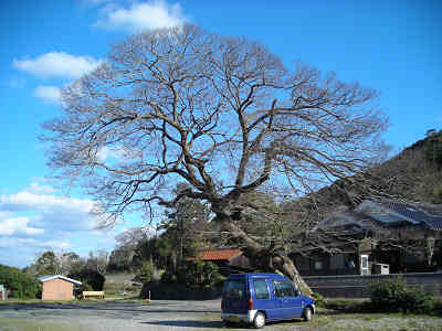 リュックを車に入れ、茅刈のムクノキの記念撮影をする。車を移動し、祠もパチリ、美しい展望を思い出しながら茅刈集会所を出発する。