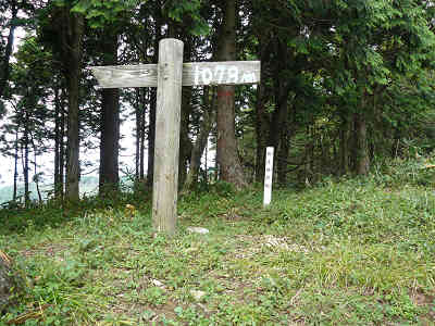 ピークから下りて再び登り返す。やがて周囲は檜の植林帯となり急な坂を踏ん張る。足下は滑り易い土質に変わり、滑らないよう注意の必要な場所を通過。この先で少し坂の傾斜がゆるみ一安心。進行方向は大きく右カーブを描き、この先で北方向へ進む。西に植林の間越しながら青野山や十種ヶ峰などが見えてくれば少し坂の傾斜も緩やかとなる。