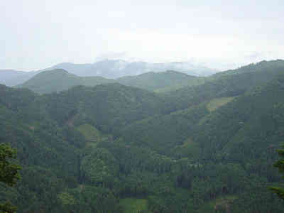 苔むした道をどんどん歩いてゆくと坂がだんだん急になり、段差があるのでくたびれた。思った通り残り800mあたりから坂が急になりあえぎだした。残り600mを過ぎると柿木方面の展望が広がり、残り500m付近では十種ヶ峰の勇姿を展望することができた。