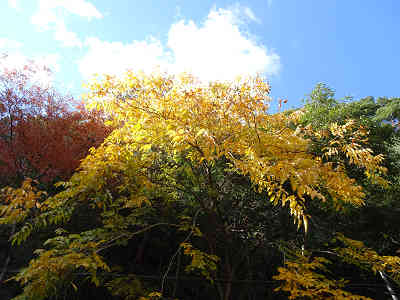 この先も道の左右に紅葉を眺め、滝橋まで帰り着いた。再度登山口に入ってみたが、よくもこの場所から取り付いたものだと感心した。周辺の写真を沢山取って駐車地まで戻り登山を終了した。その後もう少し阿武川の上流へ向かってみると左側に堰が設置されていた。何の気なしにこの道を下り周辺を眺めて引き返した。ところがこの堰こそが秘境金郷渓の端に位置する江毛九郎堰だった。残念、もう少し丁寧に写真を撮っておけば良かった。