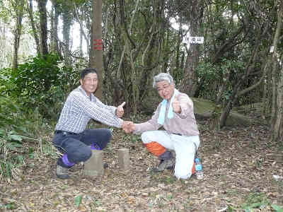 頂海山の山頂風景(動画) やがて平坦な場所に出ると、二等三角点の置かれた頂海山、本日3つ目の山頂に到着した。立派な山頂標識の前で記念撮影、今回の縦走により頂海山はとても感激の山頂となった。