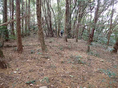 竹の目立つ場所を過ごし、登り返せば474mピークへ着いた。ここには鋤崎のプレートが置かれていた。このピークを過ごせば進路を左に取る。前回登山の際、この分岐付近は傾斜が緩やかなため、進路に苦労したところだが今回は前回の経験が生きている。進路を最初は西へ、その先で北西方向へ向かい、一気に高度を下げる。