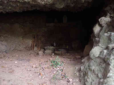 大きな集塊岩を過ごし、更に下れば鞍部の鞍ヶ峠へ着いた。ここで前方に再び大きな集塊岩が現れる。進路は集塊岩の右側へ続き、左上に豪快な集塊岩を眺めながら進む。やがて鞍ヶ峠岩屋観音へ到着、岩屋の中に祀られた観音様へ参拝、再びこの岩屋へ参拝できたことに感謝した。