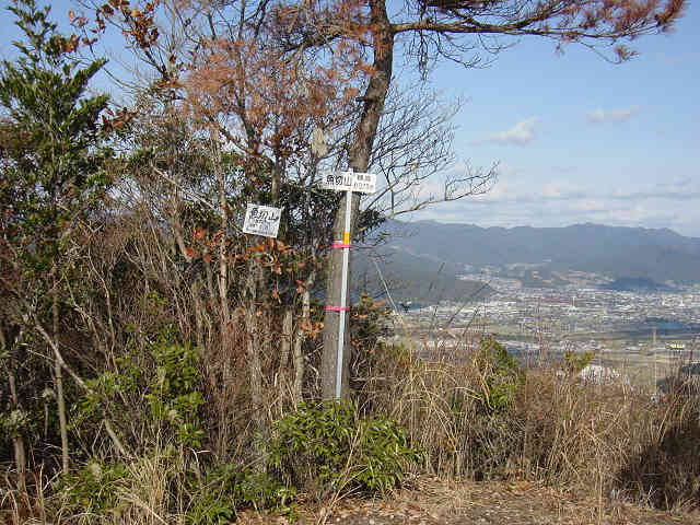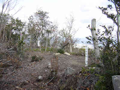 東方面が刈り払われた広い狐ヶ峰山頂 狐ヶ峰山頂は東側が伐採されており、北東から東方面にかけて素晴らしい展望が広がっている。少し遅いが狐ヶ峰にて昼食を取る。本日はとても寒いのでお湯を沸かしてカップラーメンの用意をする。その間に周囲を見回していると登山ノートがインスタントコーヒーの空き瓶に入れてあるのを見つけた。 早速に登山ノートを拝読すると、ここ狐ヶ峰は山口大学のワンゲル部のリーダー養成の研修地となっている事等が書いてあった。この登山ノートは10年以上前から設置されているようで、今から11年前の平成6年の本日、尊敬する金光氏が登頂され、書き込みをされた文章を見て感激した。まるで11年前の金光氏にお会いしたような不思議な気持ちになった。 山頂にて記入する登山ノートにはその当時の純粋な思いが記載されており、再び同じ山に登った際、昔の自分と再会できる楽しみもあるようだ。私自身以前は登山ノートがあっても記入することは無かったが、最近は積極的に書き込みをすることを心がけている。