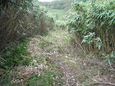 ジグザグな道を登ること5分で緩やかな尾根道に到着、1000m標識からは10分程度の行程である。一気に高度を上げてきたような感じだがゆっくり歩いているのでやはり疲労感はない。尾根道に入り少し安心していると残り600m標識を左に過ごす。前を見ると真っ直ぐな一本調子の坂道が続いている。