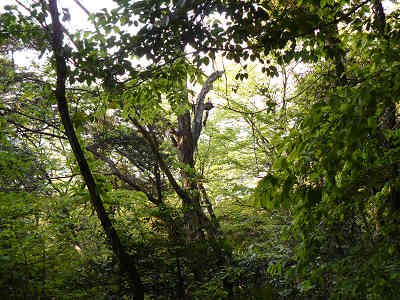 今回も山頂から真っ直ぐ下山する道を通ったものだから、次第に道は細く急な斜面となり、途中で倒木に出会い、障害物競走と同じような状況となってしまった。最後にはツツジの茂る藪道を強行突破、まだ草木の茂る前なので何とか通り抜けることが出来た。
