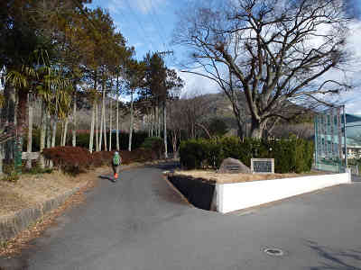 今回の登山口は、岡山県百名山に記載の和気中学校。当日は冬休みの日曜日で、学校行事のないことを確認し、校門の手前にある駐車場へ車を置かせて頂いた。登山準備の後、校門左に続く道に入り、道なりに舗装道を進むと未舗装道に変わる。