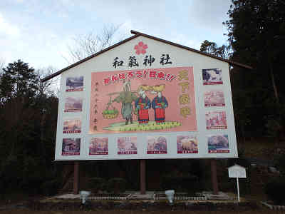 その後、近くの和気神社へ参拝、この地方出身の和気清麻呂公・浅虫姫の祀られた神社にて日本一の大絵馬を観賞。たくさんのお願いをして神社を出発した。帰りに山陽自動車道で事故渋滞があったため、福山で高速下りて夕食を摂り、今年最後の登山を無事修了した。 なお、和気清麻呂公と猪の関係については。北九州市の足立山登山の項に記載してあるので、興味のある方は参照して頂きたい。