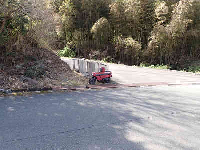 更に下ると舗装道に着き、道なりに下ると生活道に合流、相変わらず大型トラックが土を運んでいるようだ。少し下るとバイクを配置しておいたゴミステーションに到着。さて、バイクに乗って帰れば本日の登山は終了だが、ここで大変なことが起きた。