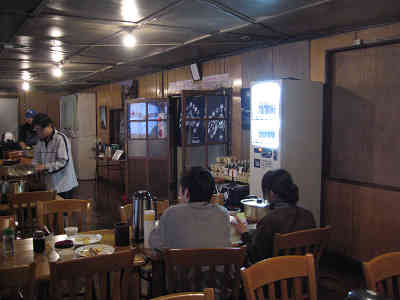 食堂にて豪華夕食 その後部屋に帰り、荷物の整理をしたり、入れ替えたりでいつの間にか消灯時間の8時半。ところがなかなか寝付かれず、結局遅くに寝たみたいである。午前1時過ぎに一回トイレに行ったくらいで、本日はなんとか寝ることができたようだ。