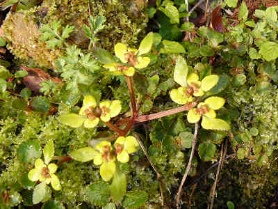 舗装道を進んで行き、右手に広兼産業の工場を過ごし、工場の先を右折すると植林帯の手前にも駐車スペースがある。植林帯の中を右手に沢を見ながら進み、舗装林道は堰堤を過ごすと未舗装林道となる。足下のかわいい花を眺めながら歩いていると背後よりご夫婦が登られてきたので、すぐに道を譲る。今日はゆっくりと歩くつもりなのだ。昔の登山記を読み返すと、町中のウォーキングと同様、体に付加を与える目的で山を歩いていたことが多く、後続者に道を譲ったり、途中の景色や草花をゆっくり観賞する余裕は無かったようだ。