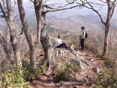 ローソク岩から南方面の展望 ぐるりと一周の展望をゆっくりと楽しんだ後、本縦走中のハイライトの一つ、ローソク岩を下りることにする。なお、ローソク岩に向かう道順を自分のために記録しておく。そう、誰のためではなく自分のために・・・、これの理由は容谷山山頂にて説明することにする。