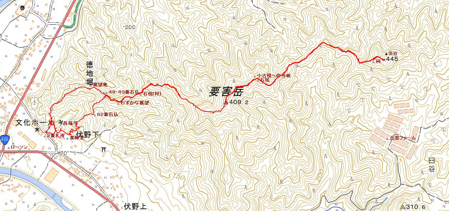 →0:50→ 高嶽山頂 →0:50→ 要害岳山頂 →0:30→ 48・49番石仏