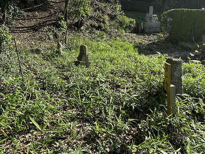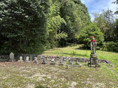 昌福寺から始まるお遍路登山 今回の登山口は、麓にある昌福寺(しょうふくじ)の墓地駐車場です。昌福寺は幕末奇兵隊及び膺懲隊がこの地に一時駐屯した時、屯所として使われていた場所の一つです。駐車場の左端に掲示された「お大師様八十八ヶ所巡礼」の案内板が目印で、ここが参道の入り口となっています。私は2番の石仏から巡礼をスタートしました。もし昌福寺に参拝してから登山を開始する場合は、本堂左側から石鳥居をくぐり、コンクリート舗装の坂を上ります。その先に建つ祠の右手から参拝道に入ると、7番の石仏から巡礼が始まります。