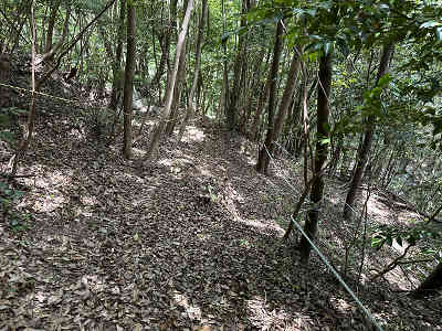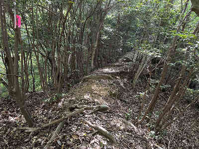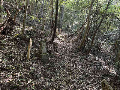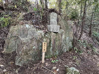 参拝道には補助用のロープが設置されており、札番の木札も新しくなっているようでした。6番の手前で右手に祠を過ぎ、7番で祠側からの道と合流します。歩きやすい参道を辿り、順番にお大師様の石仏に手を合わせながら、ゆっくりと高度を上げていきました。