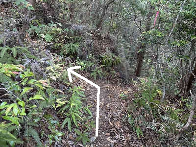 石杭を過ぎて坂を下り、鞍部(あんぶ)から再び登り返します。山腹に続く細い道を辿り、苔が美しい場所を通過するなど、なかなか見どころの多い縦走路です。しばらく涼しい風が吹いていて快適でしたが、地形の関係か、途中から風がなくなり体温が上がるので、こまめな水分補給が欠かせませんでした。