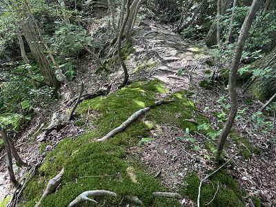 猛暑日でも快適な樹林帯の道 この日は梅雨の晴れ間で、最高気温が35度近くまで迫る猛暑日でした。しかし、登山行程のほとんどが木々に覆われた樹林帯の下だったため、風が吹くととても涼しく感じられました。