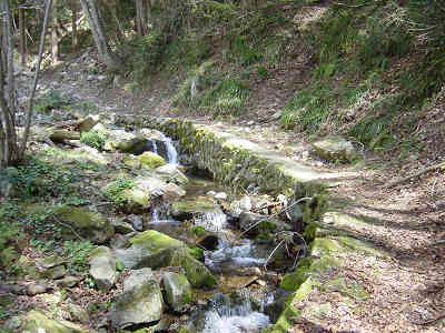 10分降りると一旦坂が緩やかになるがすぐに急な道となる。途中で綺麗な花を見たり、山桜の名残りを見たりしながら降りて行くと木目の滝分岐から25分で沢に到着した。