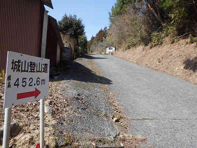 トップに戻る 2015年に登った山リストへ戻る 山名アイウエオ順 2015年2月28日 後山地区ゴミステーション →0:25→ 登山道入口 →0:10→ 延命の滝分岐 →0:10→ 岡の谷分岐 →0:06→ 表参道・裏参道分岐 →0:07→ 天狗の足跡 →0:02→ 杵崎大権現 →0:15→ 城山山頂 →0:40→ ゴミステーション 全歩行時間 1時間55分 山口県防府市の楞厳寺山登山の後、周南市湯野の城山へ向かう。国道2号の周南市戸田交差点から北へ進路を採り、夜市川沿いに進む。登山口は後山地区で、登山口へ向かう起点を周南市湯野支所とすれば、湯野支所から進路を西へ採り、山田家本屋方面へ進む。 そのまま道なりに進み、カーブミラーの立つ分岐を右折、神田神社の鳥居の手前を左折する。蔵本橋を渡り、そのまま進めば左に後山地区のゴミステーションと城山登山道の案内が見えてくる。この付近の邪魔にならない場所へ車を置いて登山を開始する。 分岐を左折し、少し進むと登山道は右へ分岐する。この入口にも登山道の案内が掲示されているのでとても助かる。明るい舗装道をのんびり進めば、南側から湯野温泉より続く登山道と合わさる。この場所には城山登山案内図が掲示されており、前回眺めたものが新調されていた。 これから向かう登山道には、延命の滝、延命水、天狗の足跡など見所が多く、山頂へ向かう行程が楽しみである。広い作業道はもう少し続き、間もなく進路は右方向へ変わる。少し広くなった部分には城山登山道の案内が立ち、その脇には山頂の権現様への参拝用に杖が置かれている。
