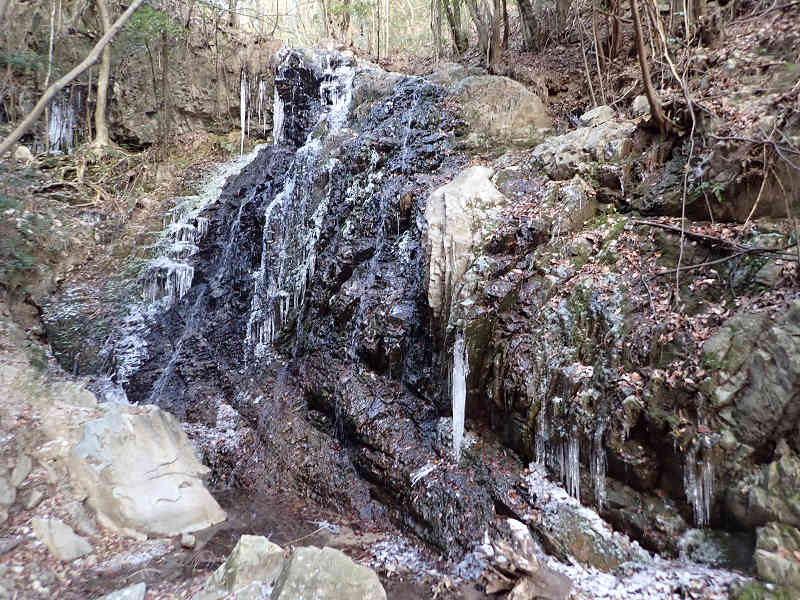 滝へ向かうと左には石仏や観音様、お不動様が祀られておりとても神聖な雰囲気である。肝心の夕日の滝だが、ここ数日来の寒波の影響によりつららが多く、神秘的な滝になっていた。北広島町の龍頭山以来のつららの滝に感動した。